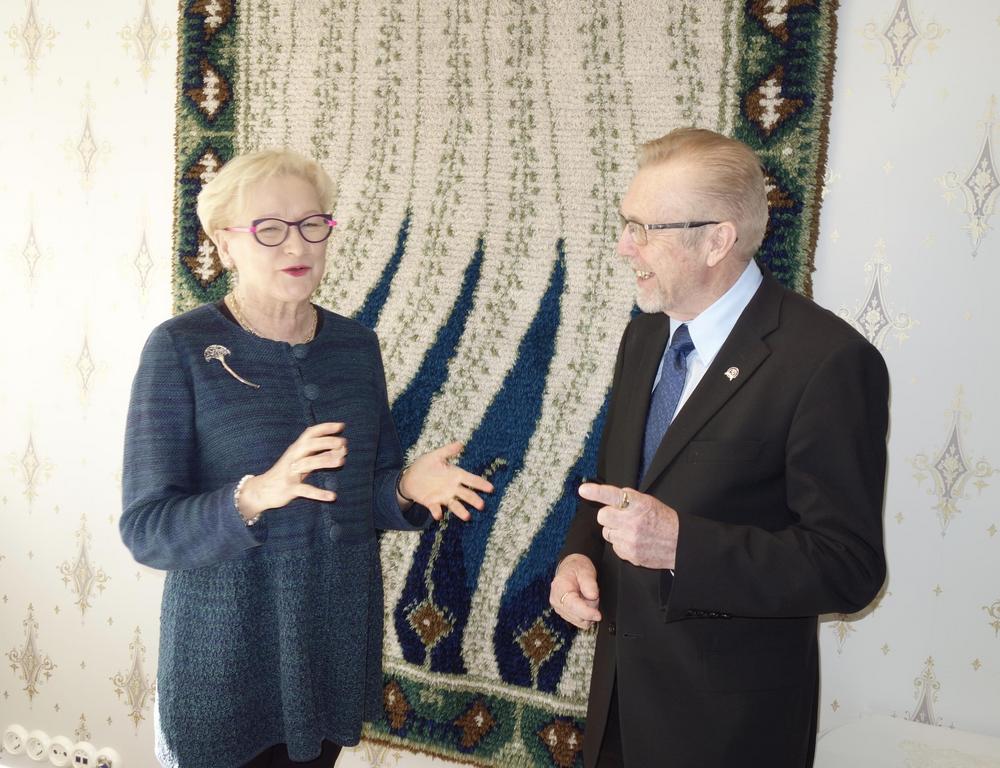 3. Kokoustauolla keskustelivat liiton puheenjohtaja Anneli Taina ja Pirkanmaan piirin puheenjohtaja, Rainer Hirvonen.