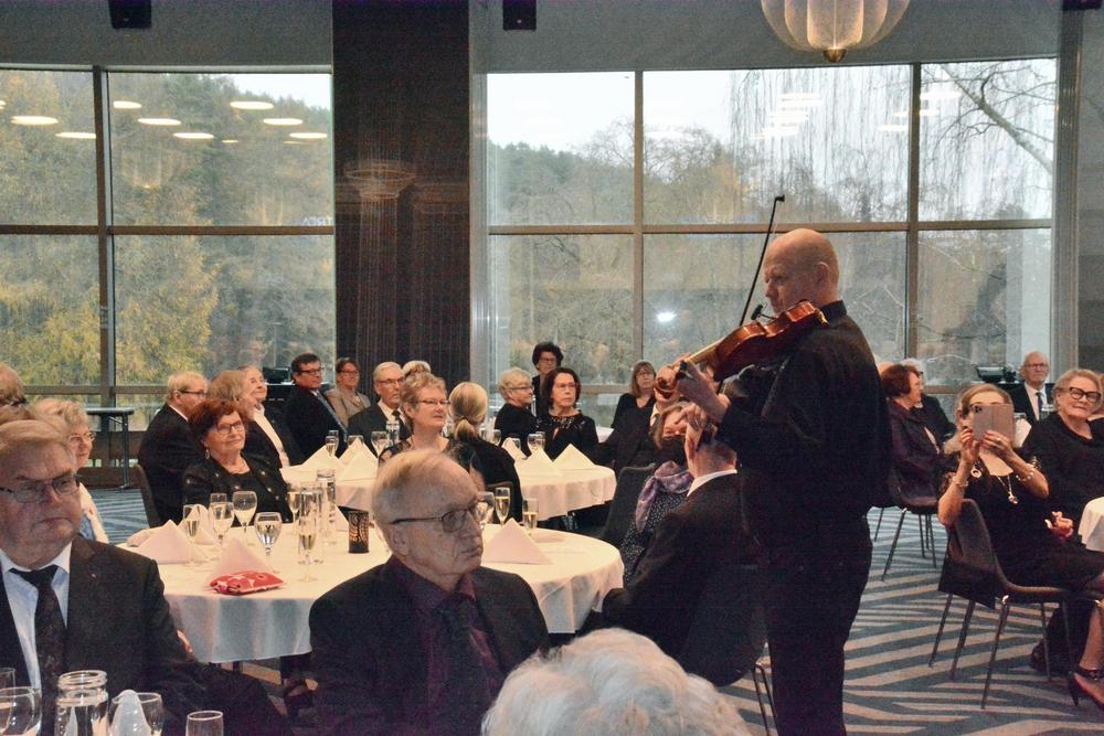Runsaslukuinen vierasjoukko oli iloisella juhlamielellä, koska päästiin tapaamaan tuttuja ja toisten yhdistysten senioreita. Juhlatunnelmasta piti huolta tilaisuuden juontaja Ahti Jokinen sekä harmonikkataiteilija Vesa Penttilä ja viulutaiteilija Seppo Suikkanen.