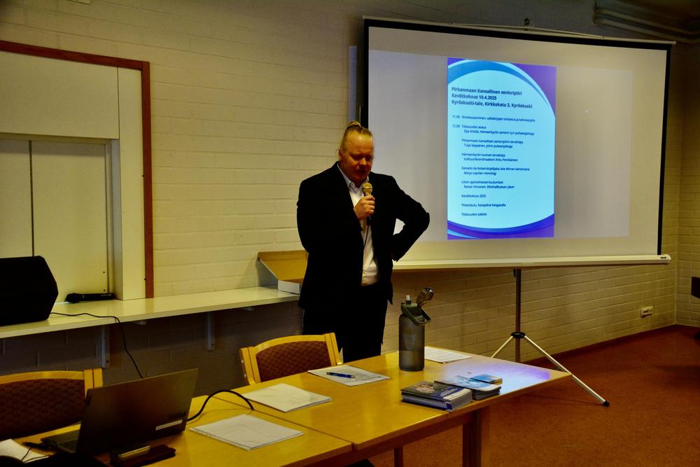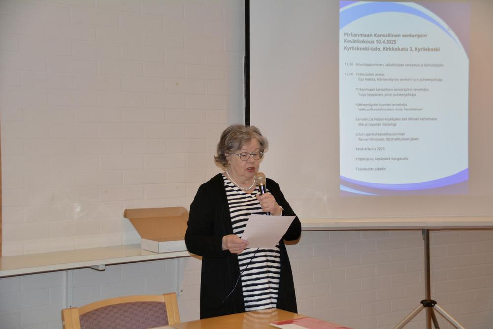 Pirkanmaan kansallisen senioripiirin kevätkokous pidettiin Hämeenkyrössä Kyröskoski-talossa torstaina 10.4.2025.