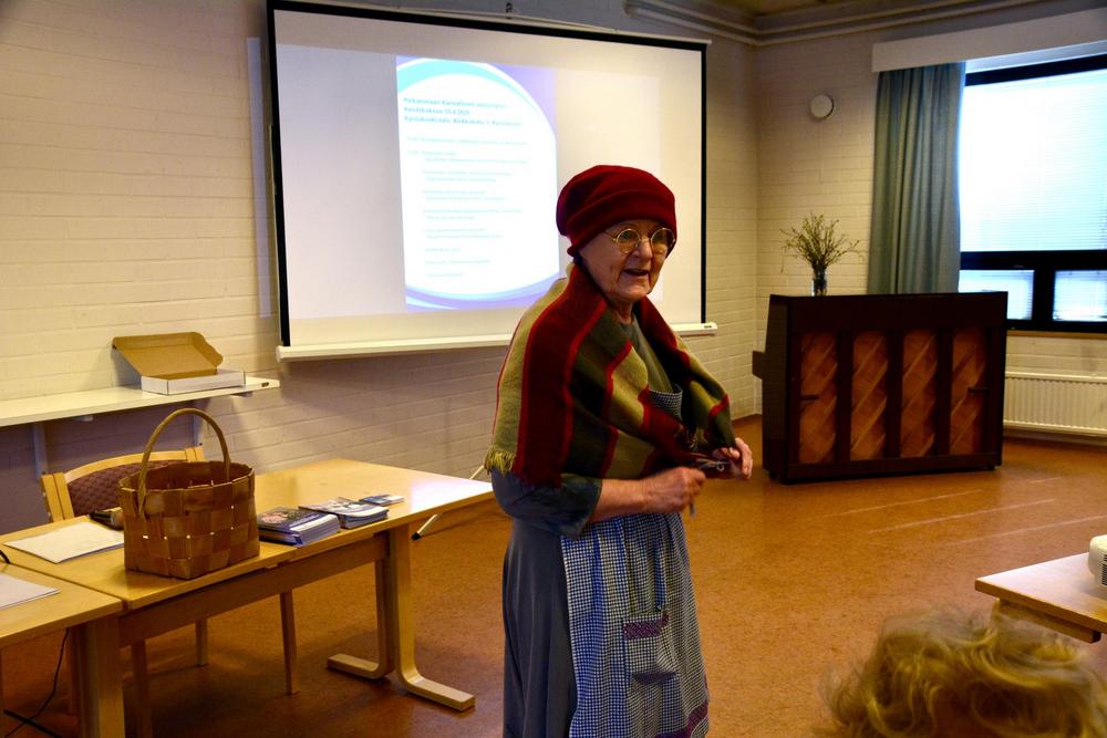 Hämeenkyröläisyydestä kertoi värikkäästi kunnan kulttuurikoordinaattori Arttu Pentikäinen ja vielä ennen kokousta kuultiin Marja Lepolan monologi Eemelin tiestä Nobel kirjailijaksi ”äite Miinan” kertomana.