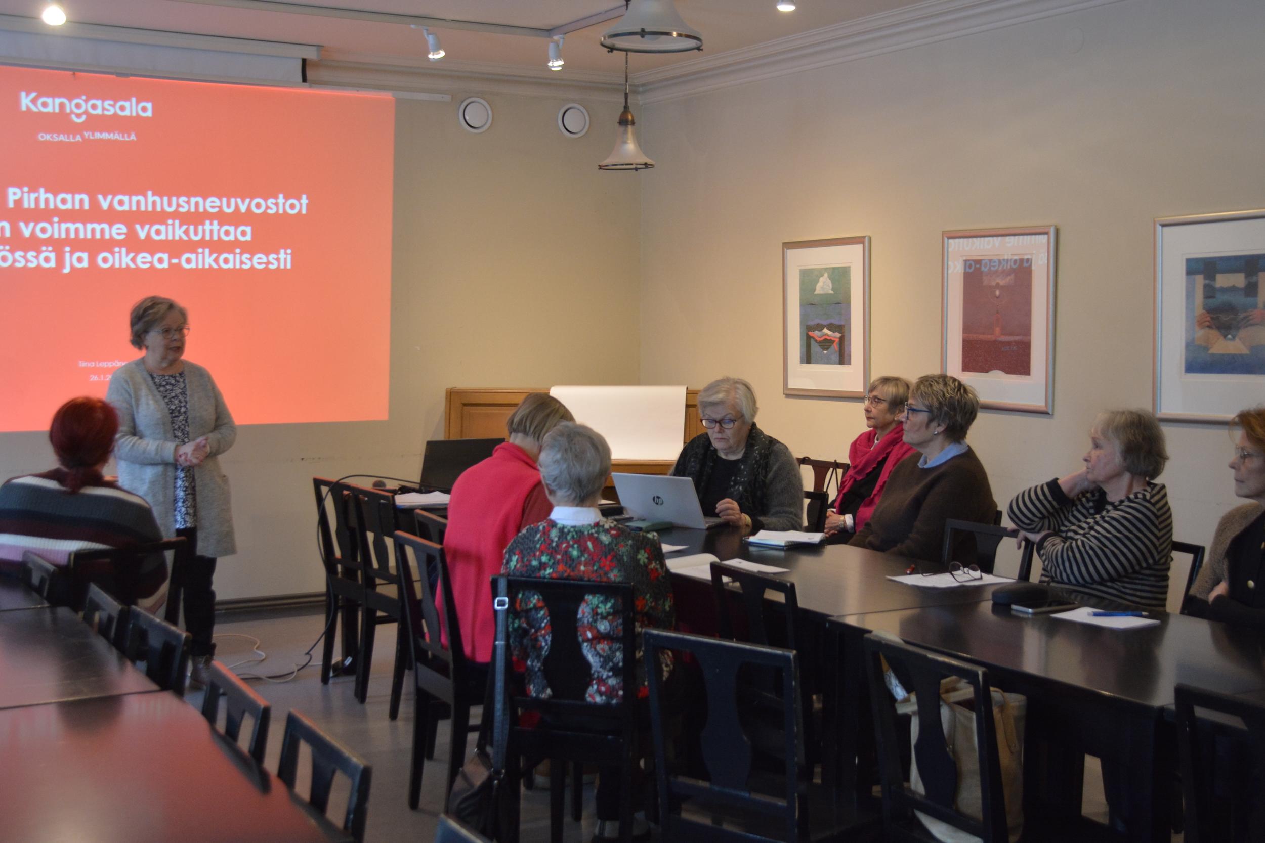 Tilaisuuden avasi piirin puheenjohtaja Tuija Seppänen ja keskustelua johdatteli Kangasalan vanhusneuvoston puheenjohtaja ja Pirhan vanhusneuvoston 1. varapuheenjohtaja Tiina Leppänen.